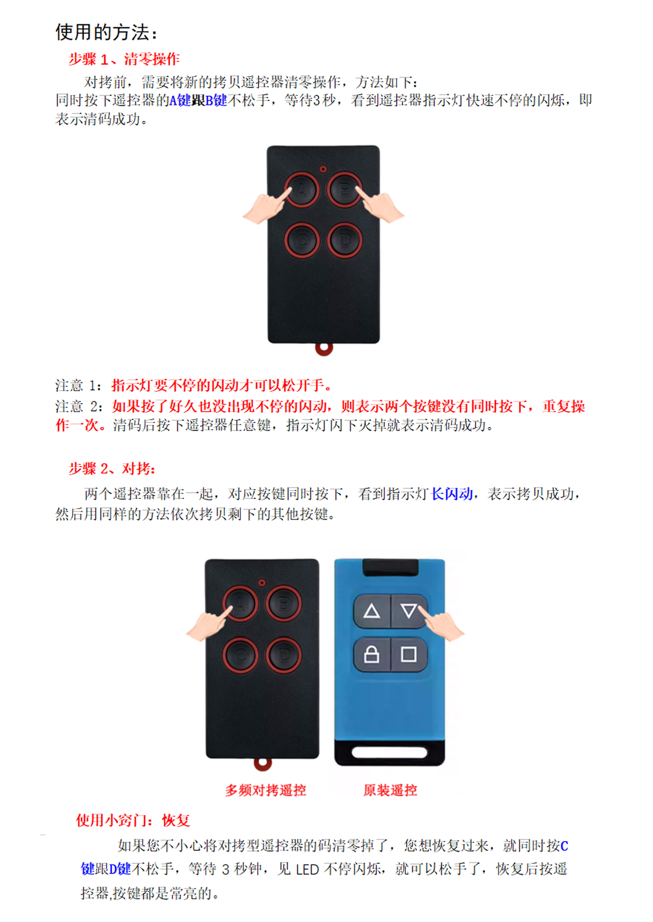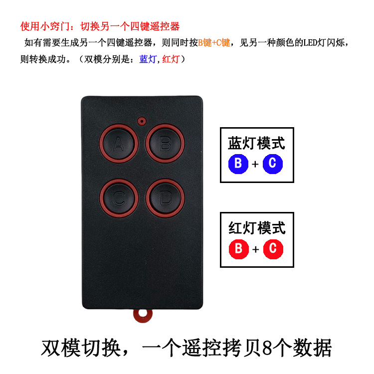 产品用途:适用于各种车库门、电动门、卷闸门、道闸等遥控器匹配增加!