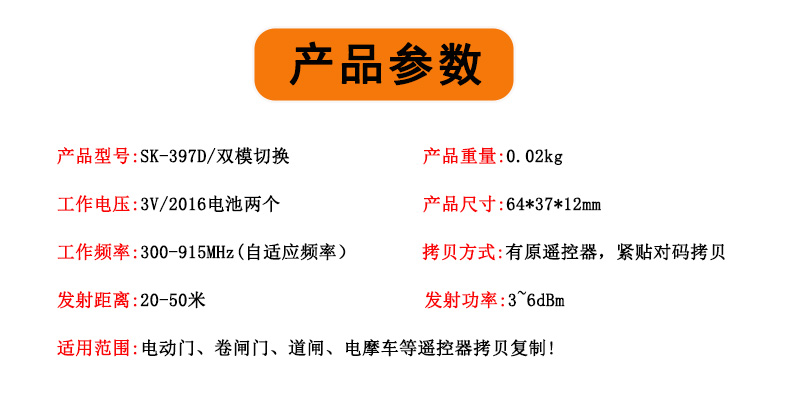 产品型号:SK-397D 双模 多频 对拷遥控器