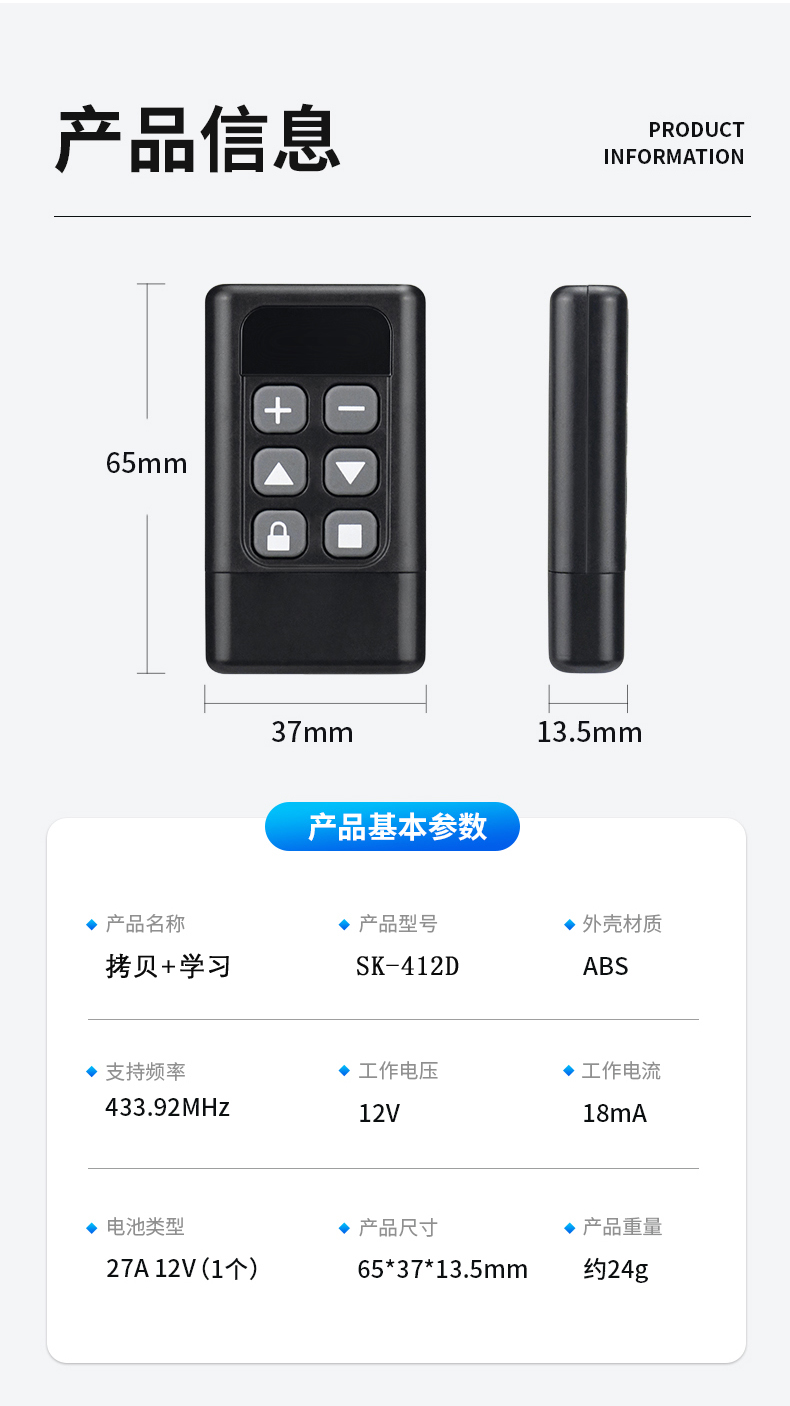 产品型号:SK-412 主机学习+对拷遥控器